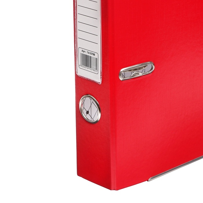 Папка-регистратор А4, 75 мм, Calligrata, ПВХ, тиснение "лен", металлическая окантовка, карман на корешок, собранная, красная, микс