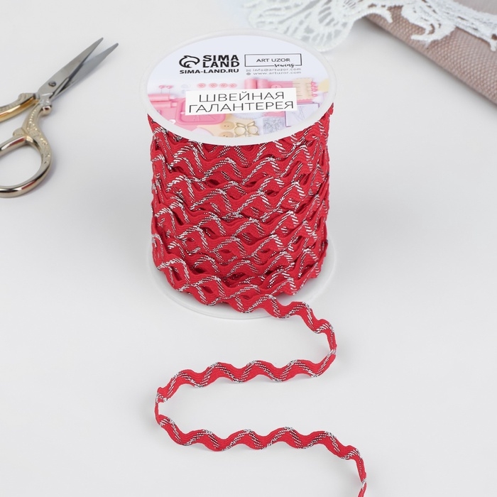 Тесьма отделочная «Вьюнчик» с серебряной нитью, 5 мм, 27 ± 1 м, цвет красный