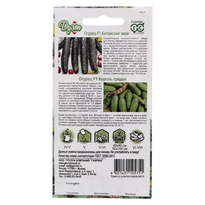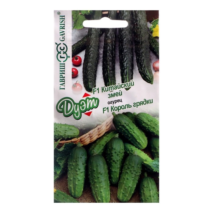 Семена Огурец "Китайский змей" 0,5 г + "Король грядки F1" 0,5 г, серия Дуэт