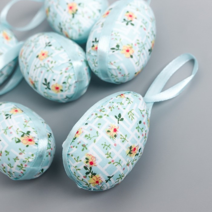 Декор пасхальный подвеска "Яйцо с цветами и узорами" набор 6 шт МИКС 6х4 см