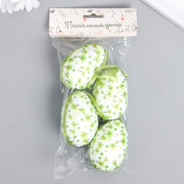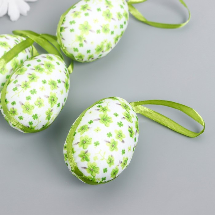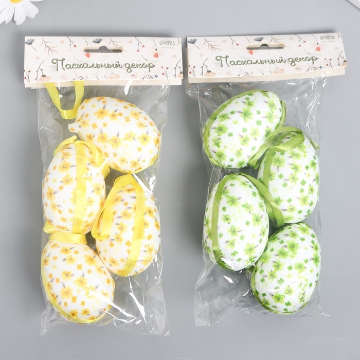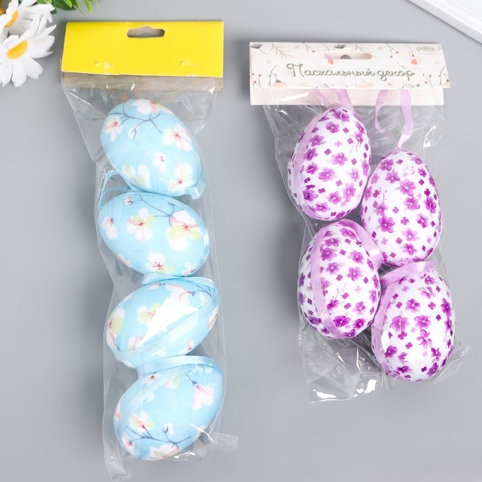 Декор пасхальный подвеска "Яйцо с цветочными веточками" набор 4 шт МИКС 7х5 см