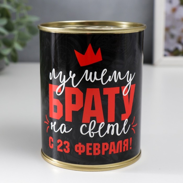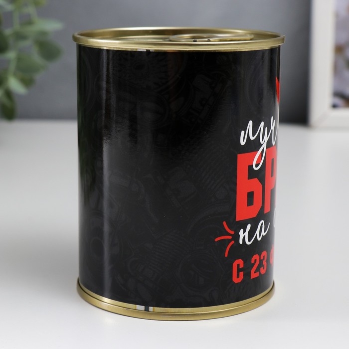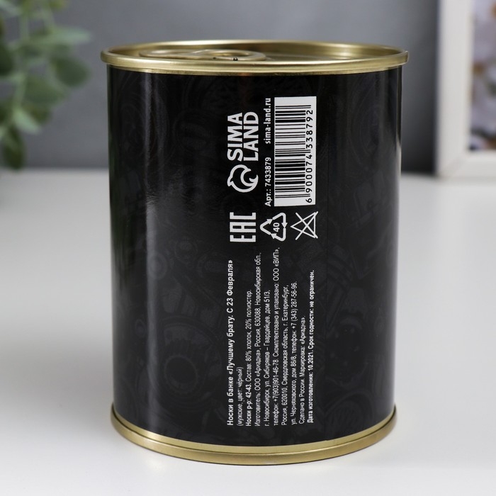 Носки в банке "Лучшему брату, С 23 Февраля" (внутри носки мужские, цвет чёрный)