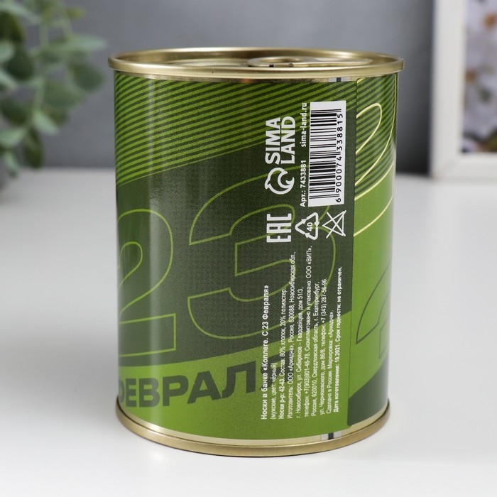 Носки в банке "Коллеге, С 23 Февраля" (внутри носки мужские, цвет чёрный)