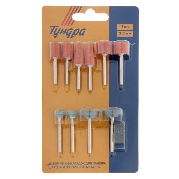 Набор мини-насадок для гравера ТУНДРА, шарошки по камню и металлу, 3.2 мм, 11 шт.