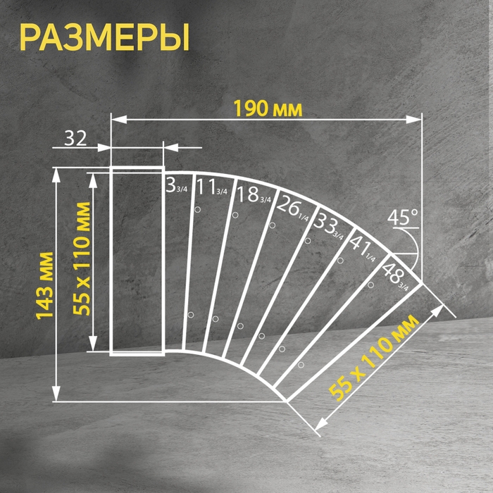 Отвод ZEIN, плоский, разноугловой, вентиляционный, 55 х 110 мм