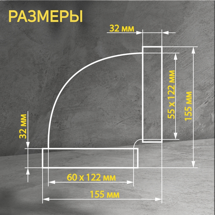 Отвод ZEIN, плоский, горизонтальный, вентиляционный, 60 х 120 мм