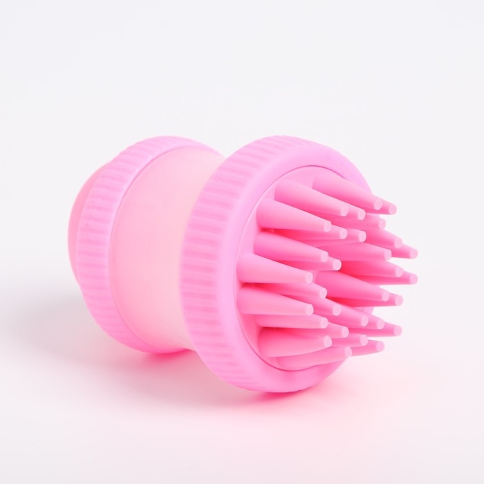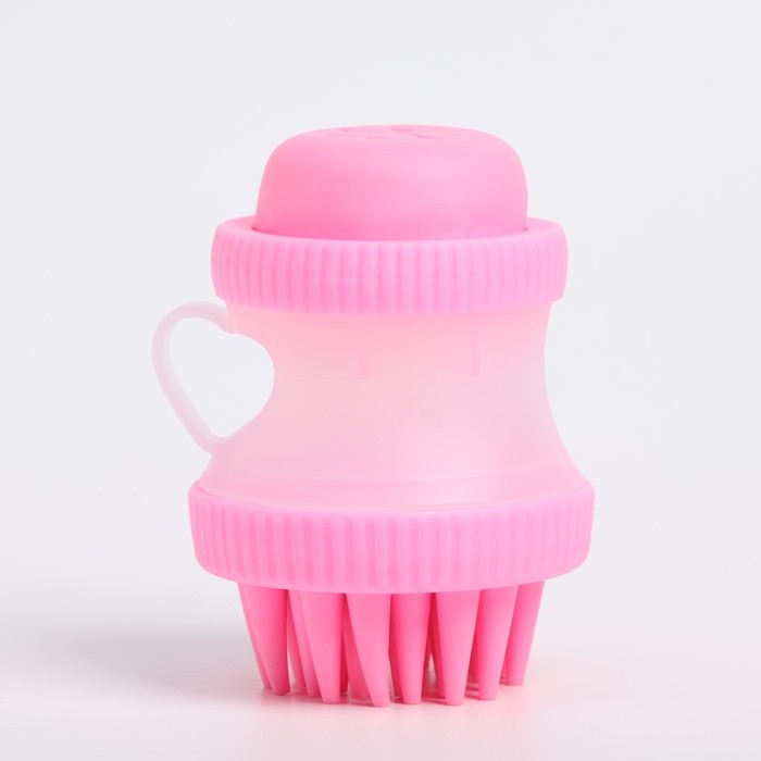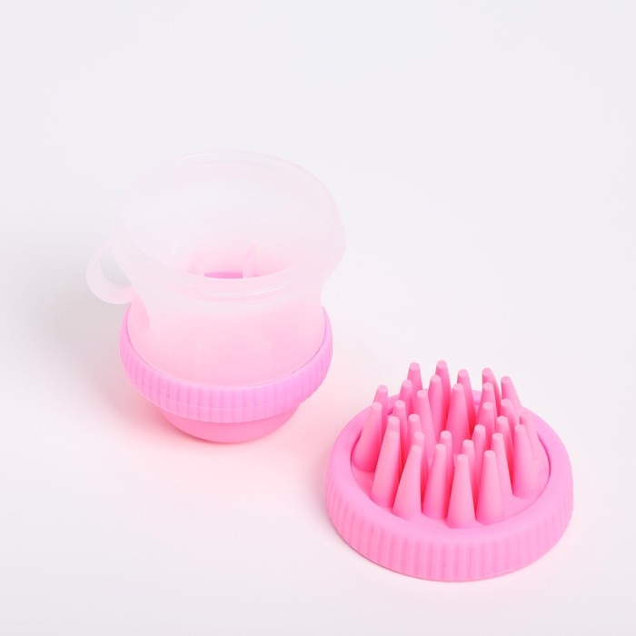Щётка для мытья и массажа собак с ёмкостью для шампуня и 2 насадками, 5.8х5.8х9 см, розовая 711233