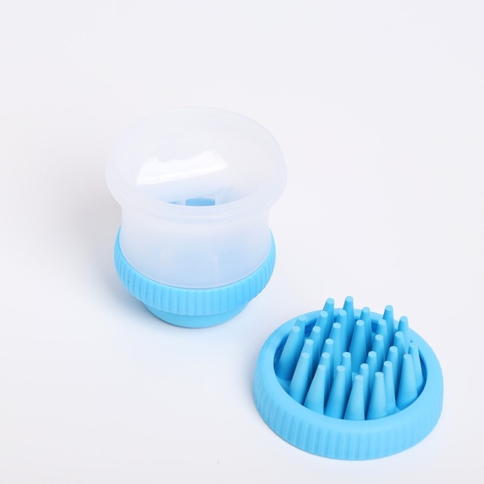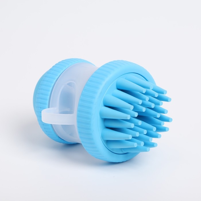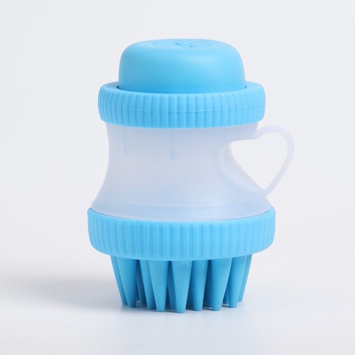 Щётка для мытья и массажа животных, с емкостью для шампуня, голубая