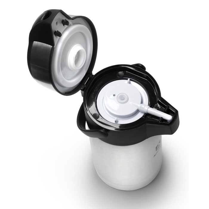 Настольный термос рассчитан на использование на устойчивой ровной поверхности и в наполненном виде всегда должен оставаться в вертикальном положении. Лежа или при наклоне во время транспортировки термос может протечь. Чтобы помпа не засорилась, рекомендуем заваривать листовой чай и травы в отдельной емкости.