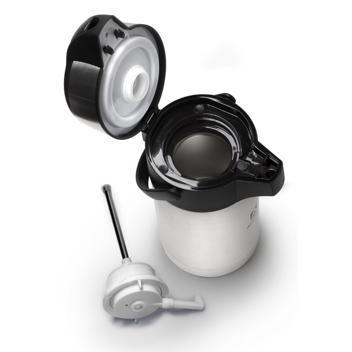 - Выполнен из долговечной пищевой нержавеющей стали, благодаря помповому механизму удобно наливать напиток в несколько нажатий