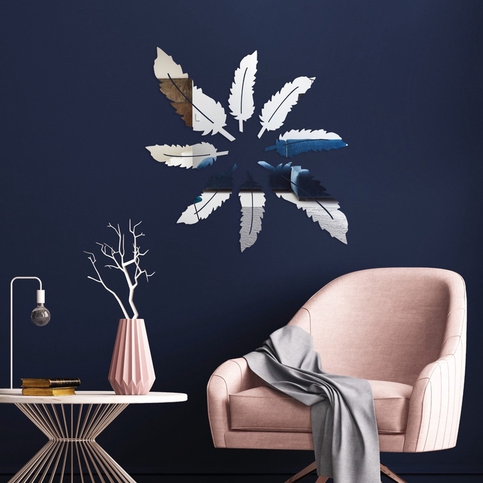 Наклейки интерьерные "Пёрышко", зеркальные, декор на стену, набор 8 шт 10.5х3.2 см