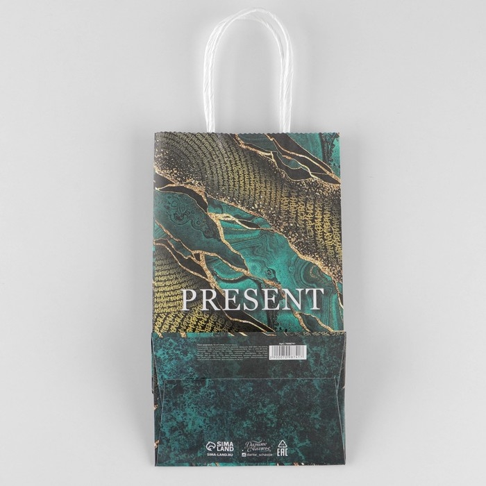 Пакет подарочный крафтовый, упаковка, «Мрамор», 12 х 21 х 9 см