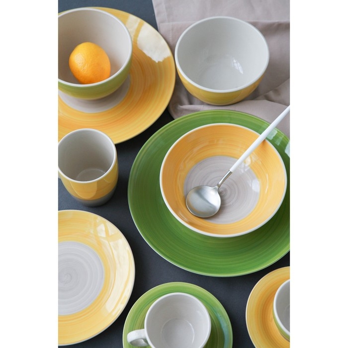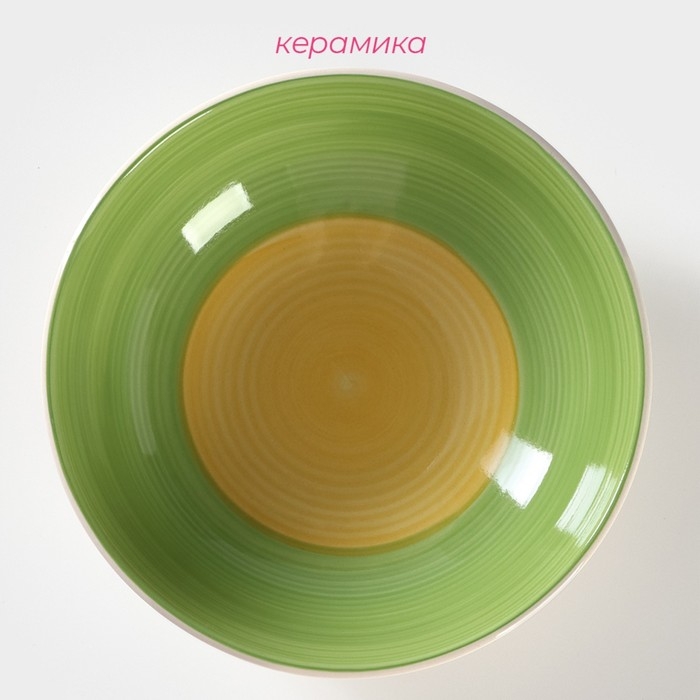 Тарелка керамическая глубокая Доляна «Подсолнух», 540 мл, d=18 см, цвет зелёный