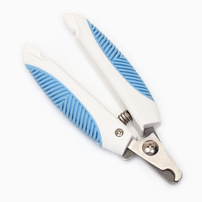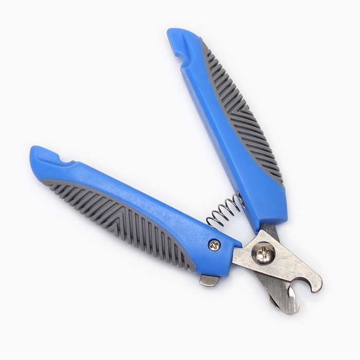 Ножницы-когтерезы изогнутые с прорезиненными ручками, отверстие 6 мм, тёмно-синие