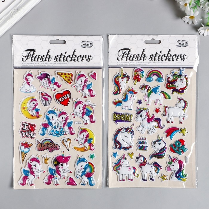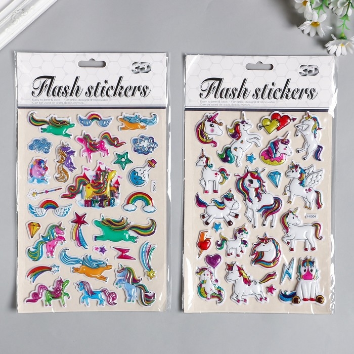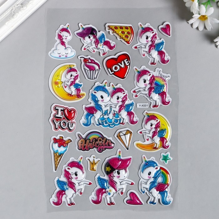 Наклейка пластик объёмные "Единороги" МИКС 28х15 см