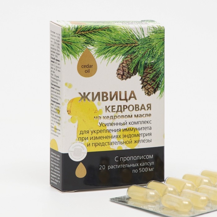 Живица кедровая на кедровом масле с прополисом, 20 капсул по 500 мг