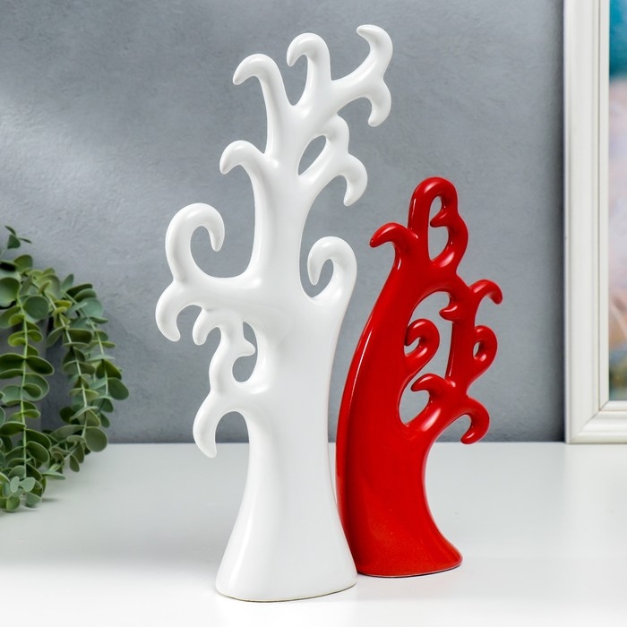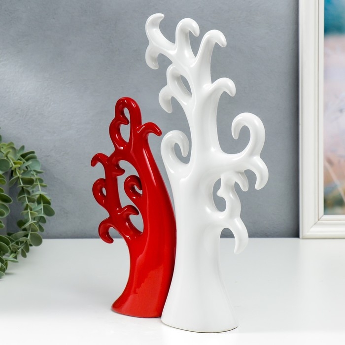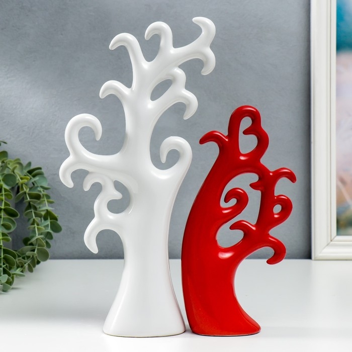 Сувенир керамика "Дерево" красно- белый набор 2 шт 24х10 32х15 см
