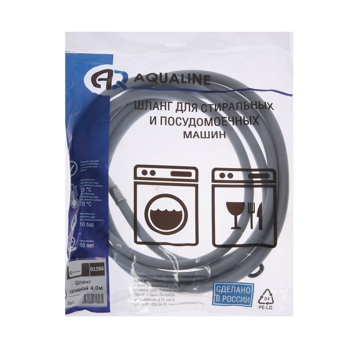 Заливной шланг для стиральной машины AQUALINE 1566, индивидуальная упаковка, 4 м