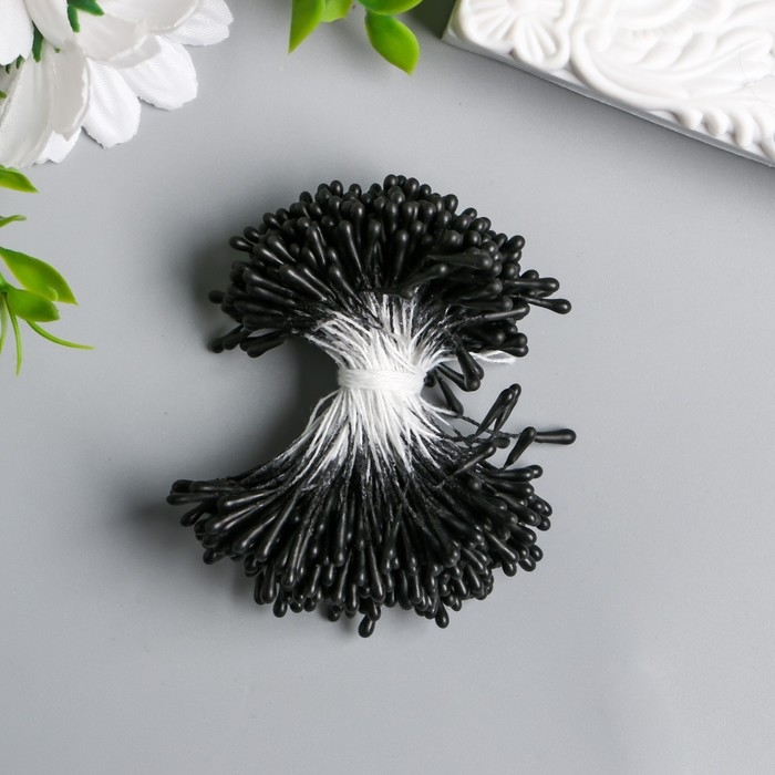 Тычинки для цветов "Капельки матовые чёрные" d=1,5 мм набор 400 шт длина 6 см