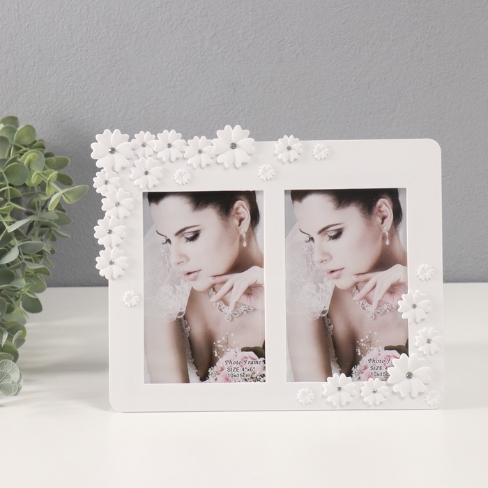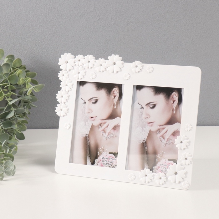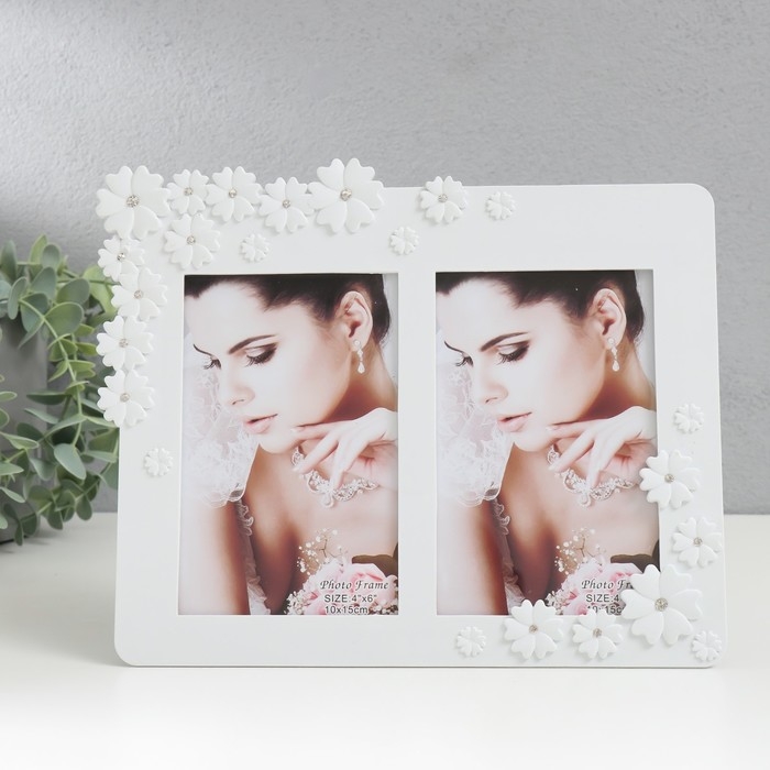 Фоторамка пластик на 2 фото 10х15 см "Незабудки" белая, стразы 25х21 см