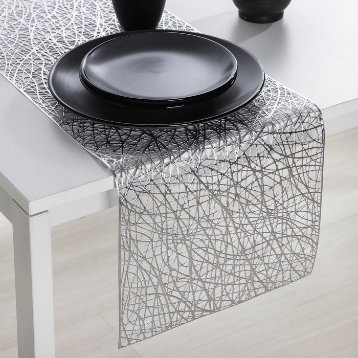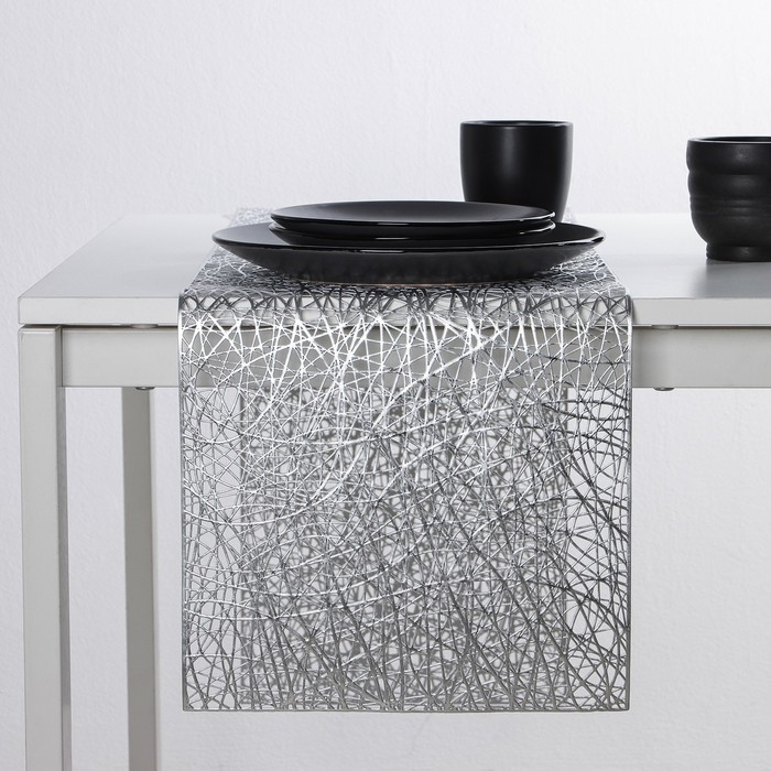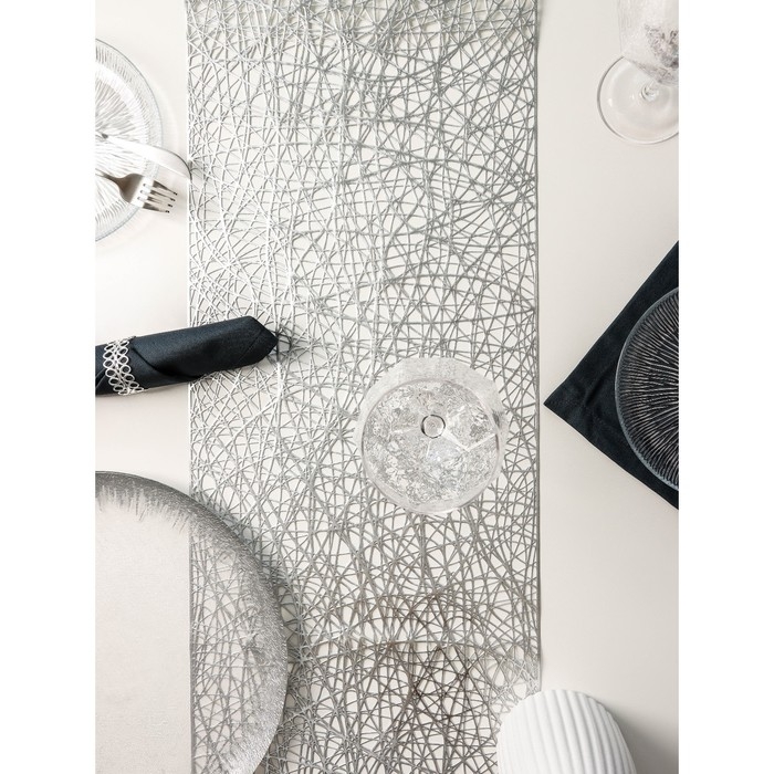 Дорожка на стол Доляна «Паутинка», 30×150 см, цвет серебряный