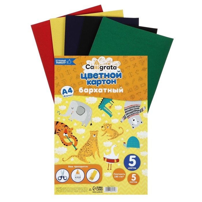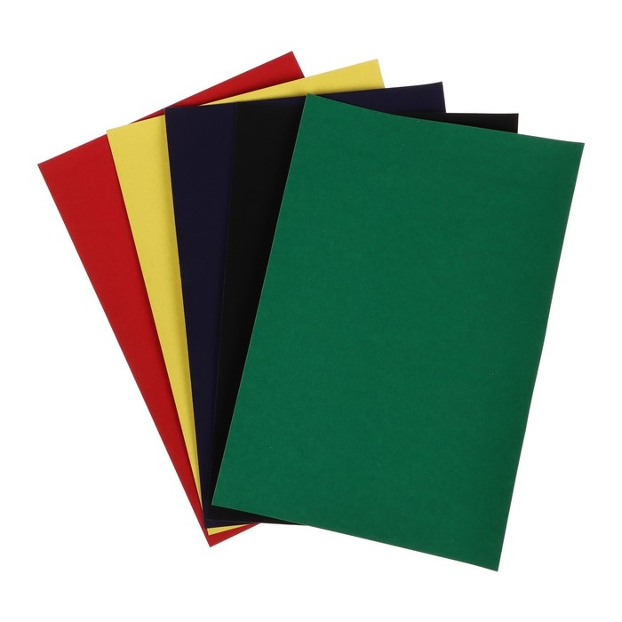 Картон бархатный А4, 5 листов, 5 цветов, 180 г/м2