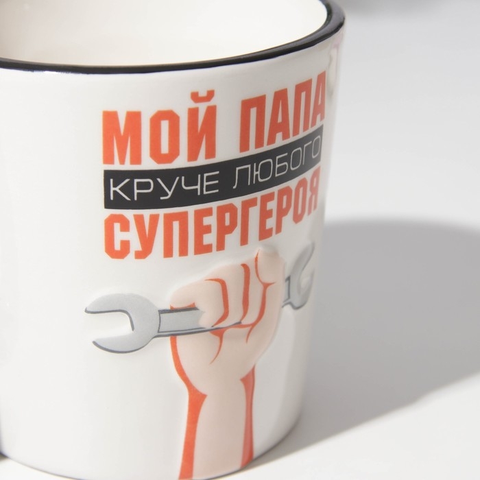 Кружка керамическая «Мой папа круче», 450 мл, цвет белый