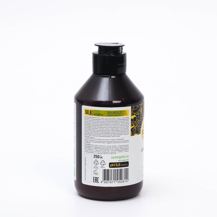 Шампунь и гель для душа мужской бессульфатный SYNERGETIC энергия и сила, 750 мл