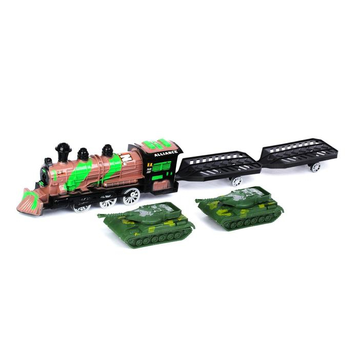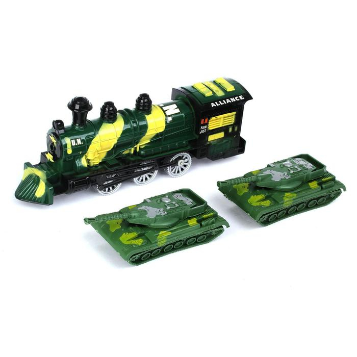 Паровоз инерционный «Военный», с танками, цвета МИКС