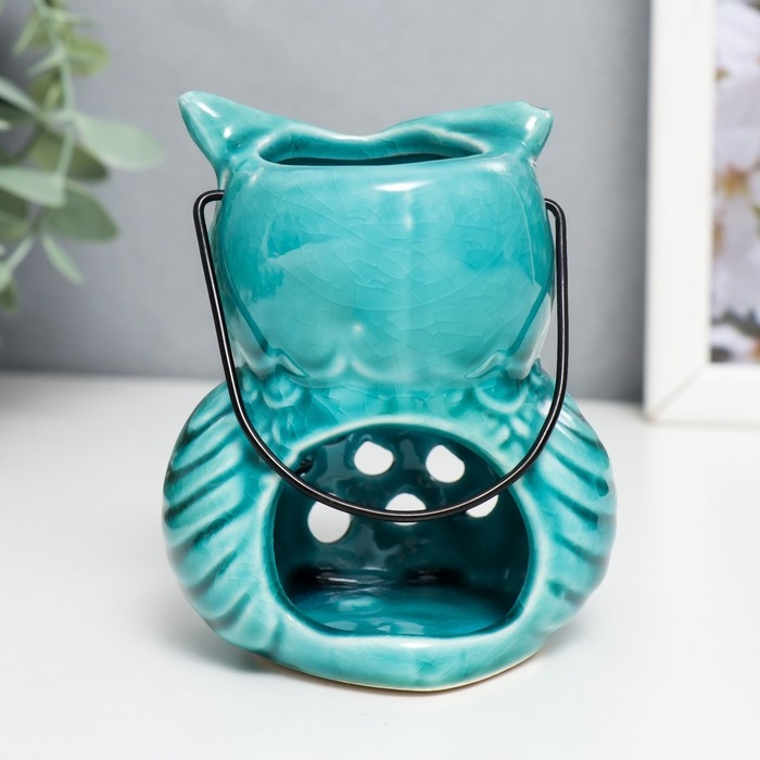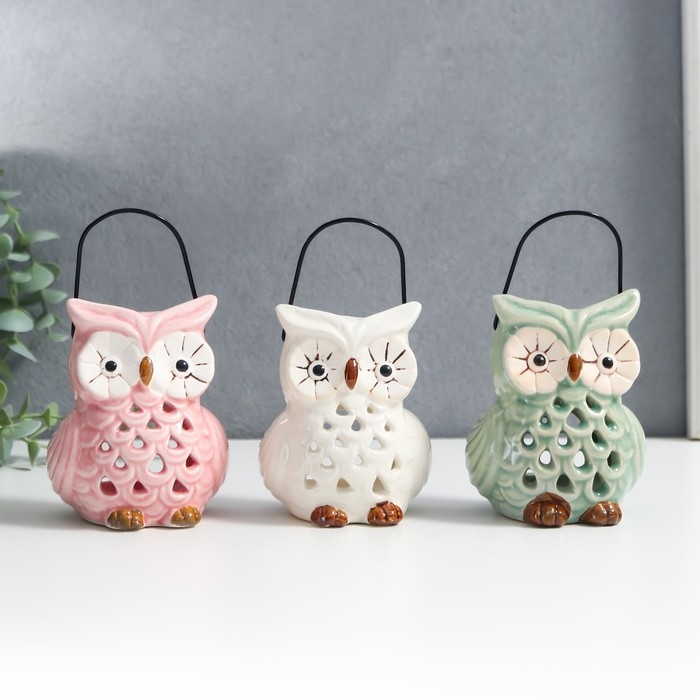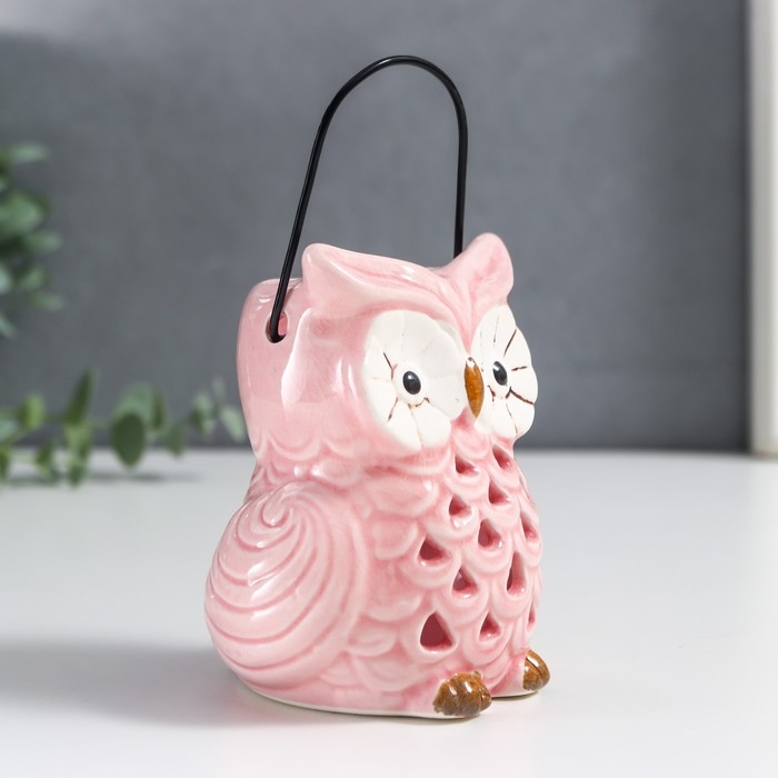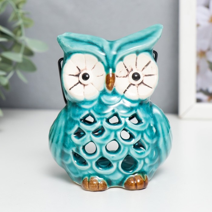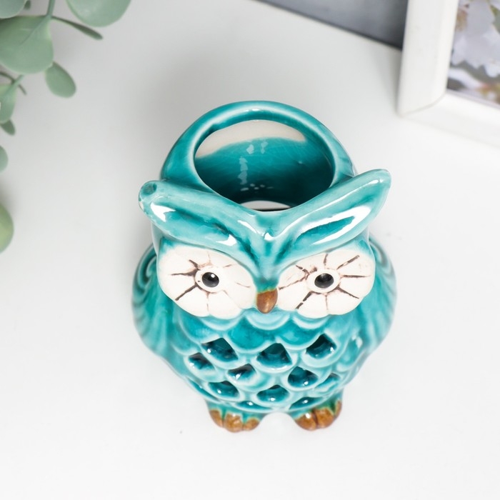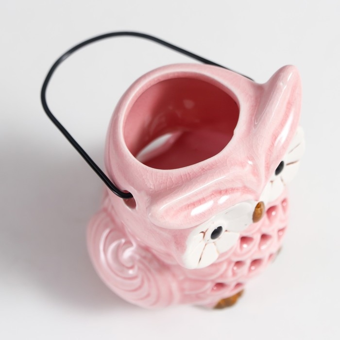 Подсвечник керамика на 1 свечу "Очковая сова" с ручкой 9,5х6,5х7 см МИКС