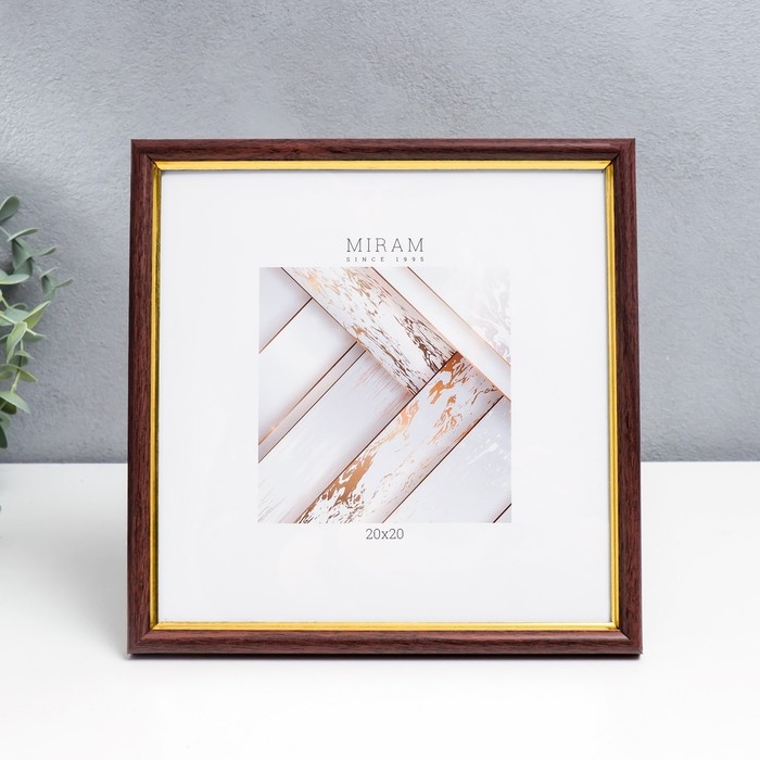 Фоторамка пластик "МИРАМ" 20х20 см бук с золотом (пластиковый экран)