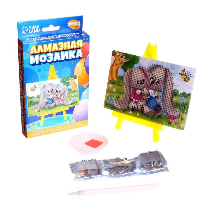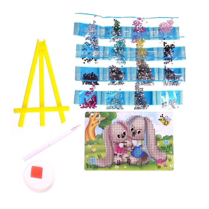 Алмазная мозаика с частичным заполнением на подставке для детей «Милый зайка», 10 х 15 см