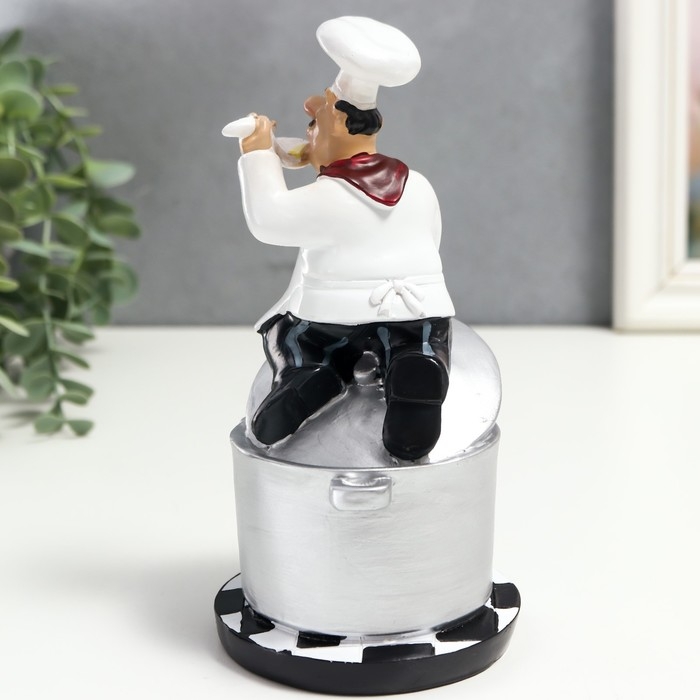 Сувенир полистоун "Повар на кастрюле - снимает пробу" 18,3х9х9,3 см