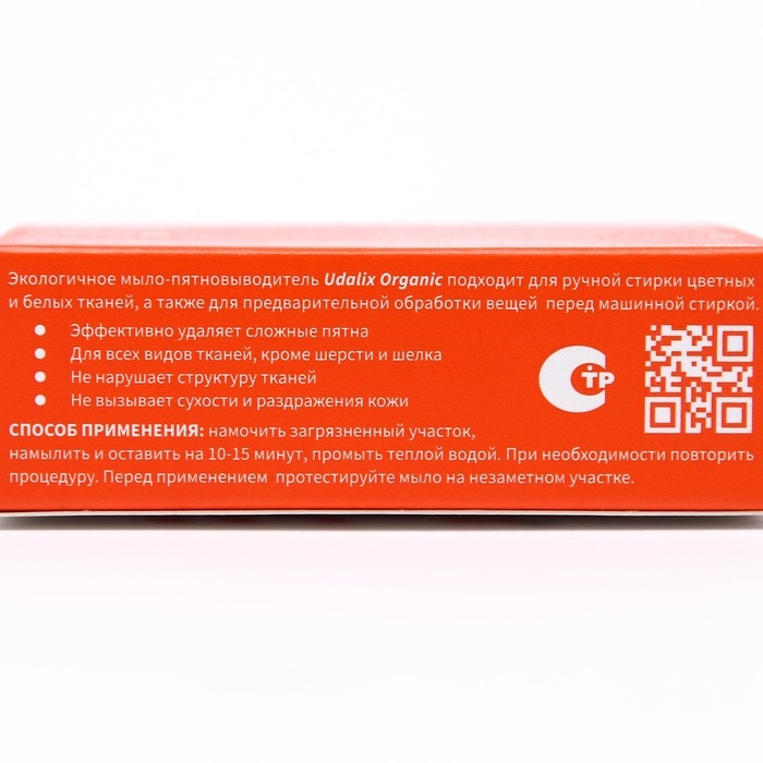 Экологическое мыло-пятновыводитель Udalix Organic подходит для ручной стирки цветных и белых тканей, а так же для предварительной обработке вещей перед машинной стиркой. Эффективно удаляет сложные пятна. Для всех видов тканей, кроме шерстки и шелка. Не нарушает структуру тканей. Не вызывает сухость и раздражения кожи.