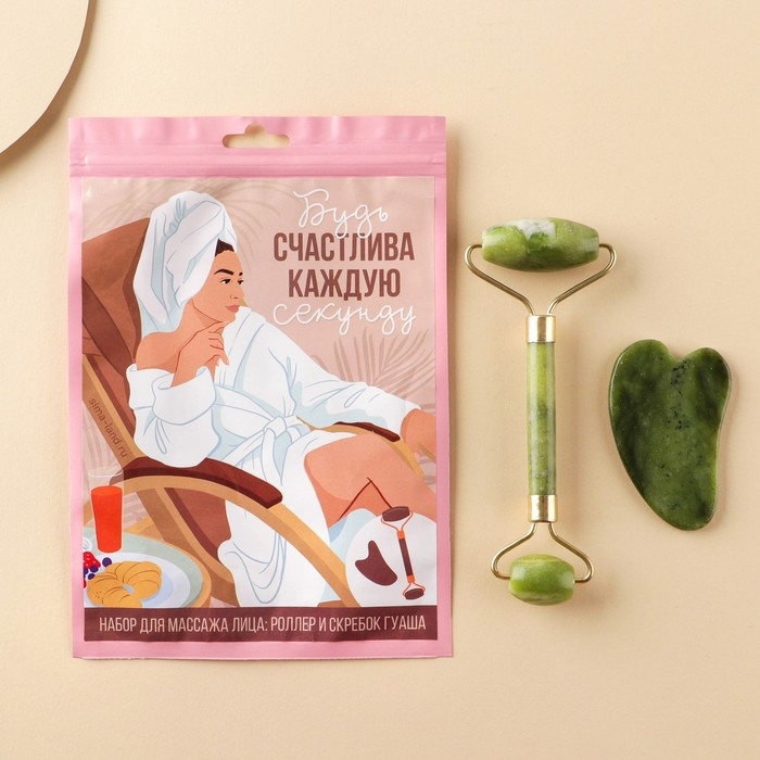Массажер для лица, гуаша набор «Самой нежной», 14 х 20 см, кальцит и серпенти