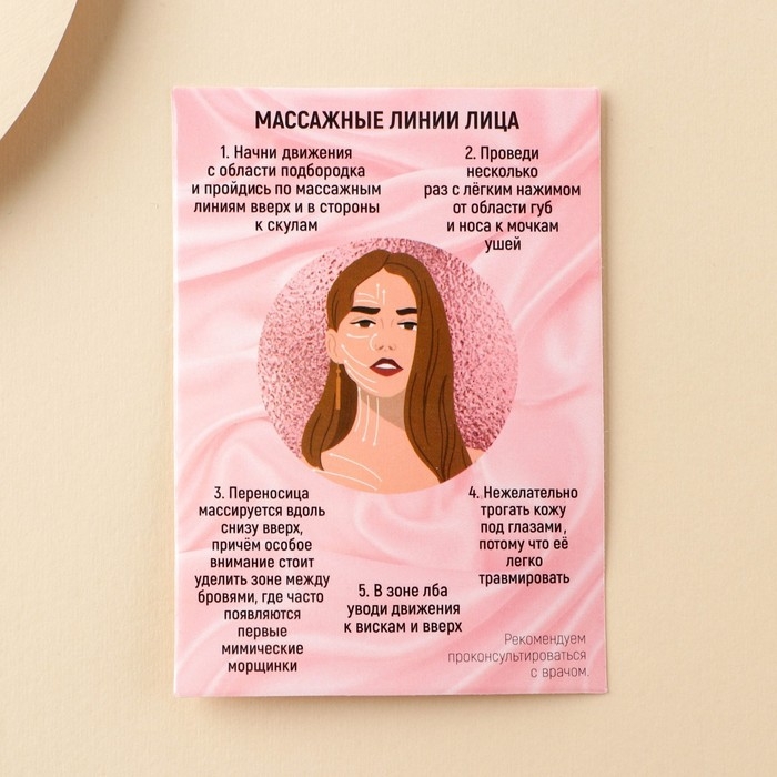 Способ применения: очистите лицо, нанесите увлажняющую сыворотку или масло. Возьмите массажёр и начните мягко нажимать на него. Двигайтесь по массажным линиям по 3 раза.