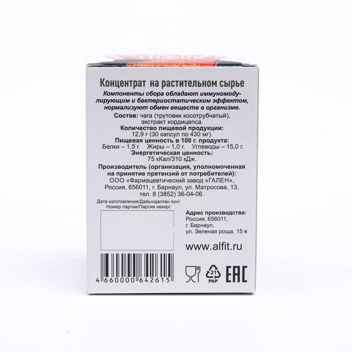 Кордицепс и чага Алфит, 30 капсул по 430 мг