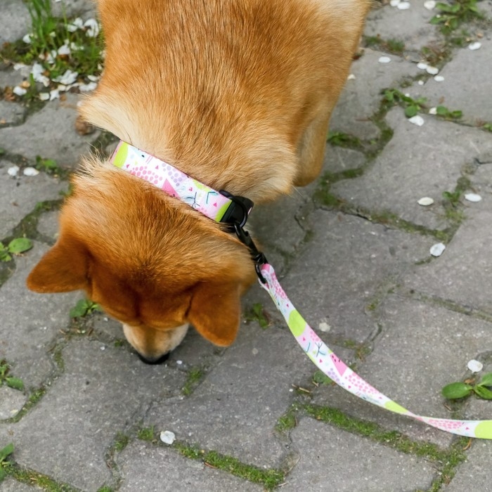 Вы можете собрать комплект амуниции, подобрав ошейник с таким же принтом из нашего ассортимента.