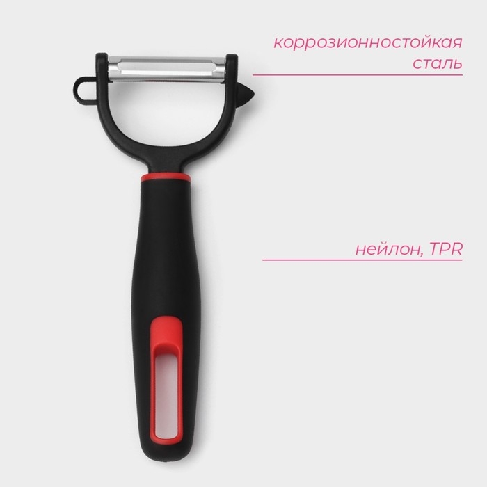 Овощечистка двухсторонняя «Скраб», 18 см, цвет красный