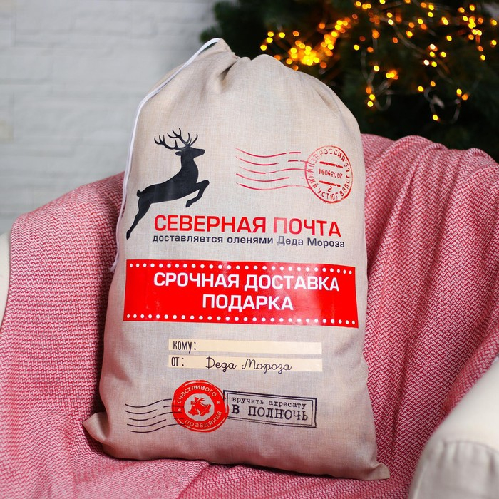 Новогодний мешок Деда Мороза «Срочная доставка подарков», 40 × 60 см.