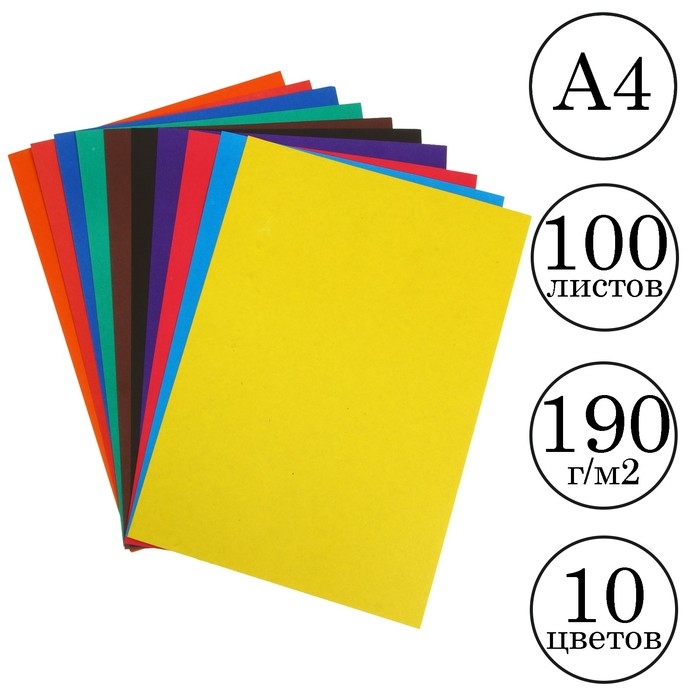Картон цветной А4, 100 листов, 10 цветов, в плёнке, Calligrata, немелованный 190 г/м2