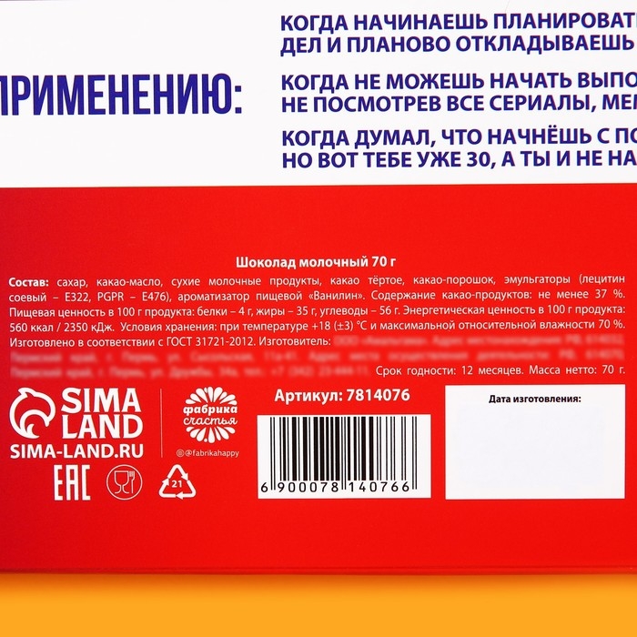 Шоколад молочный «От офисных страданий»: 27 г.