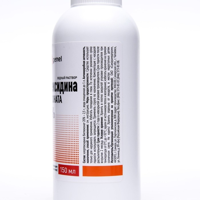 Водный раствор хлоргексидина биглюконата 0.05% "Genel" с распылителем - антисептическое средство из группы оксидантов. При контакте водорода перекиси с поврежденной кожей высвобождается активный кислород, при этом происходит механическое очищение и инактивация органических веществ (протеины, кровь, гной). Антисептическое действие не является стерилизующим, при его применении происходит временное уменьшение количества микроорганизмов. Обильное пенообразование способствует тромбообразованию и остановке кровотечений из мелких сосудов.