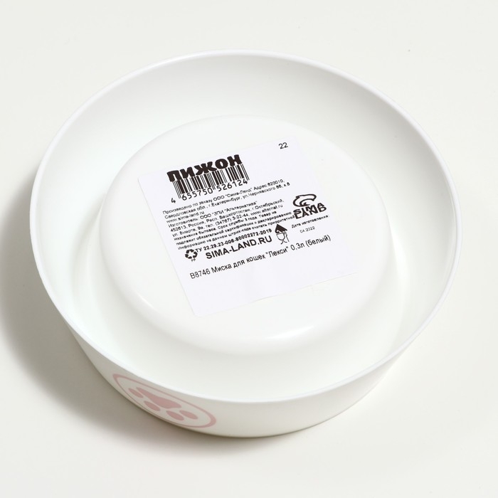 Миска для кошек "Лекси" 0,3 л, 14,5 x 14,5 x 4 см, белая