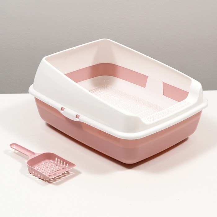 Лоток для кошек совок+ сетка 50,5 х 39 х 23 см, розовый