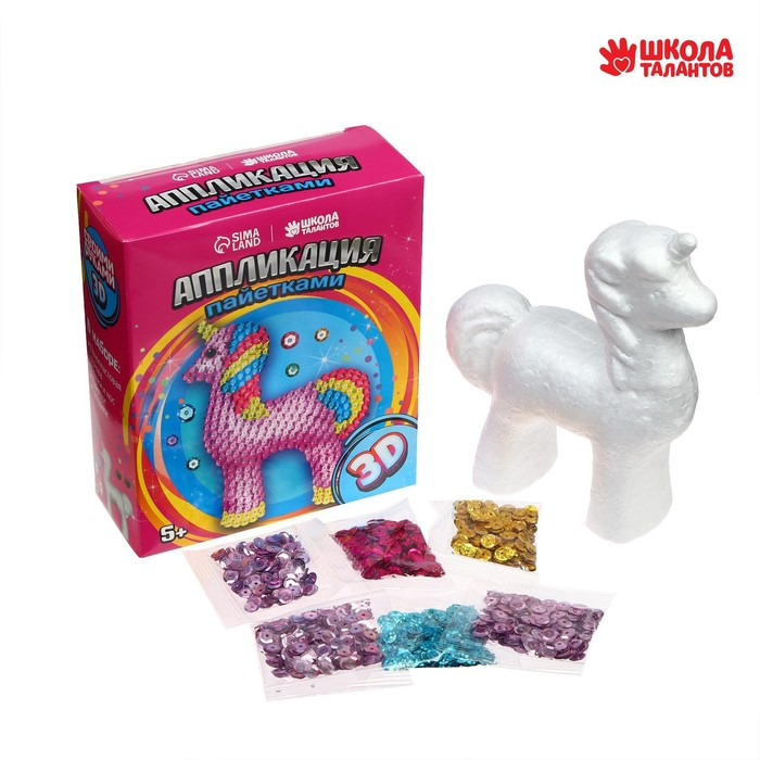 Аппликация пайетками для детей «Волшебный единорог», набор для творчества