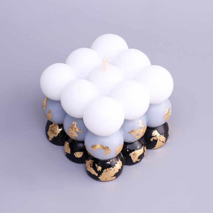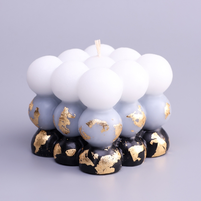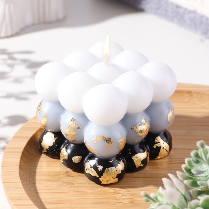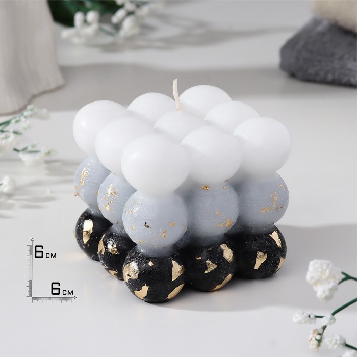 Свеча фигурная ароматическая с поталью "Бабл куб", 6 см, бело-черная, кожа и печенье