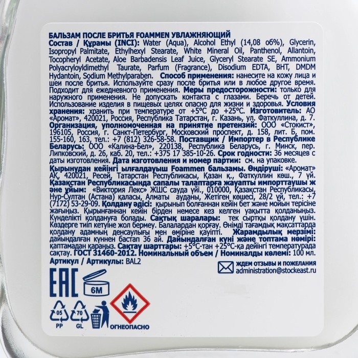 Бальзам после бритья Foammen увлажняющий, 100 мл