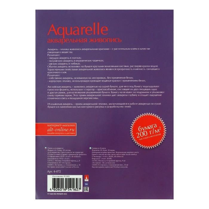 Бумага для акварели А5, 20 листов "Профессиональня серия", блок 200 г/м2, МИКС