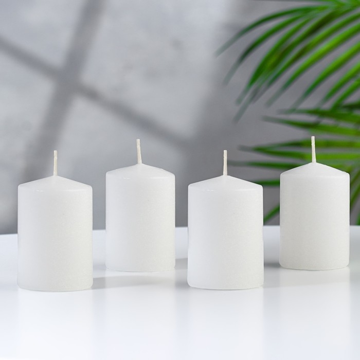 Набор свечей-цилиндров "Интерьерный", 4 шт, 6х4 см, 10 ч, белый